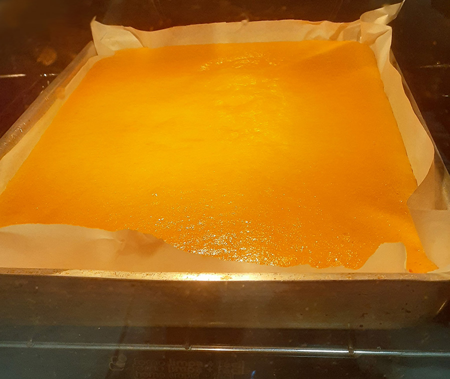 Pour your mix into a baking tray. Here I've put it on baking paper but usually we'd just grease the tray with butter and flour, so if you don't have baking paper then that's the way to go!